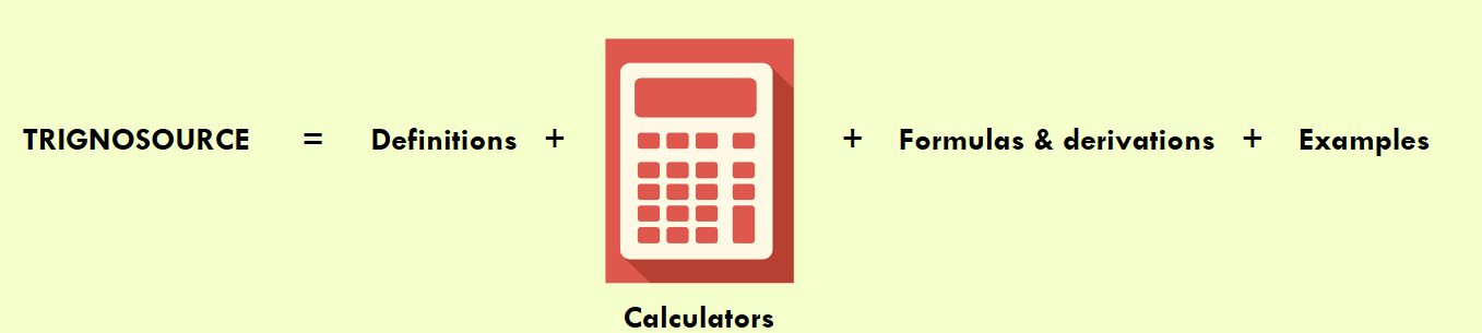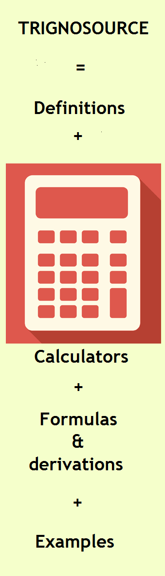 The calculators on TRIGNOSOURCE aren't just calculators. For every topic, TRIGNOSOURCE gives you definitions, detailed explanation of concepts, formulas and their derivations and numerous example problems to clearly understand and learn any concept in detail.